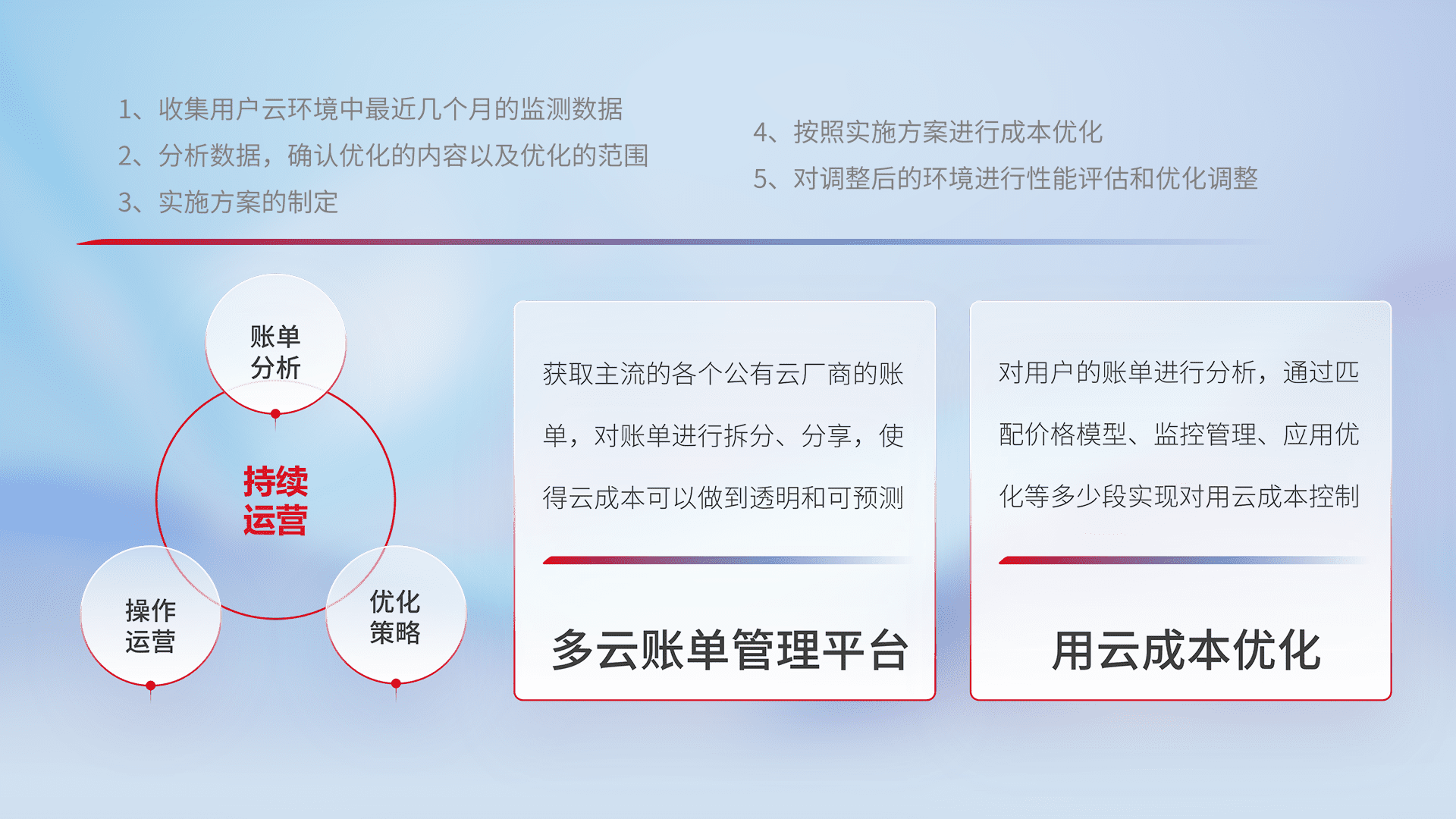 监控业务系统资源开销,,对资源的消耗精确计量,,,实现费用的透明化管理,,,,不断提升资源使用率,,,调整资源购买方式,,,降低资源费用成本,,,,用云成本可预测、、、、用云费用可优化,,云资源配额有据可依。。。